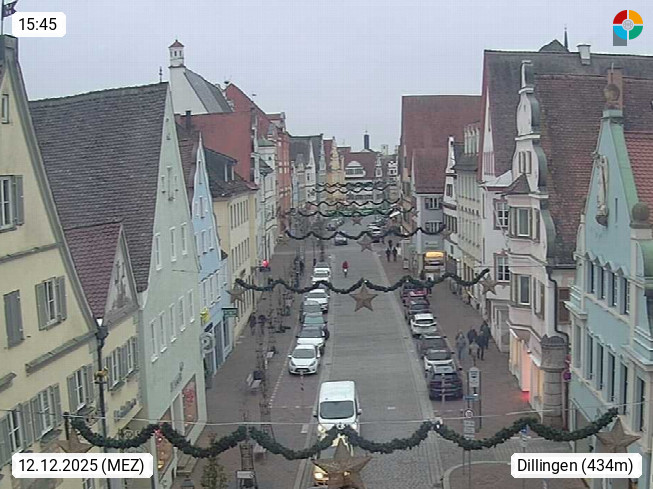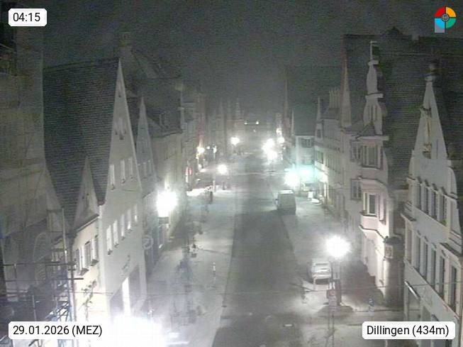 D 89407 Dillingen an der Donau 434m, Große Kreisstadt in Nordschwaben am Nordufer der Donau im Donauried. Blick in der Innenstadt richtung Osten durch die Königstraße zum Mitteltorturm. Präsentiert von https://www.dillingen-donau.de/.