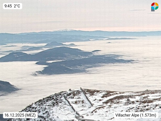 A 9504 Villach - Kärntenpanorama vom ORF Sendeturm am Dobratsch 2.166m einem östlichen Ausläufer der Gailtaler Alpen, Blick Richtung Osten. Von links, die Gerlitze 1.909m, Ossiacher See, Ossiacher Tauern mit Taubenbühel 1.069m, Wörther-See, Drau, Faaker See. Im Vordergrund die Villacher Alpe welche als Naturpark geschützt ist. Präsentiert von https://www.kelag.at.