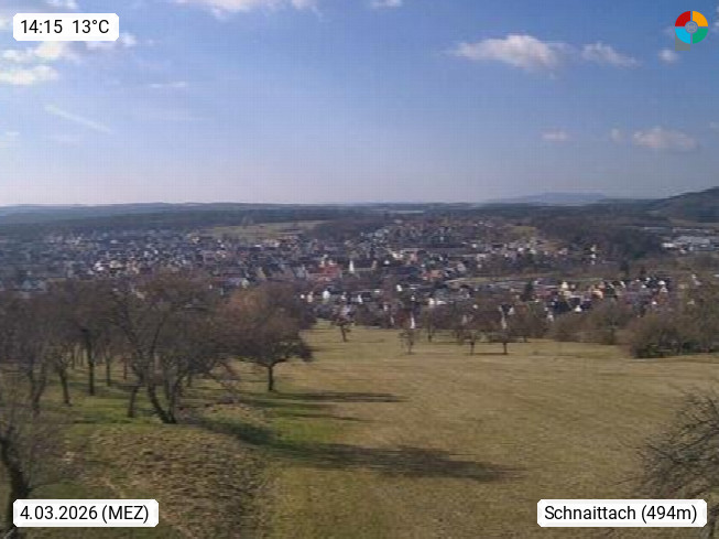 D 91220 Schnaittach 355m, im Schnaittachal und westlich des Rothenbergs am Rande der Frankenalb. Blick vom Rothenberg Richtung Westen über den Markt. Präsentiert von http://www.scrschnaittach.de.