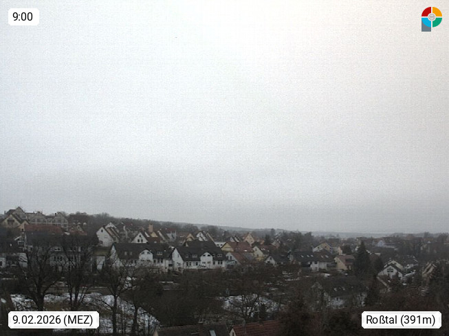 D 90574 Roßtal an der Bibert 373m, Markt rund 15 km westlich von Nürnberg. Panoramablick Richtung Westen mit der St. Laurentius Kirche. Präsentiert von https://www.pc-kuemmerer.de/.