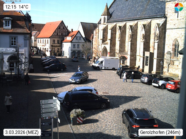 D 97447 Gerolzhofen 245m, Stadt im unterfränkischen Landkreis Schweinfurt zwischen Main und Steigerwald. Blick über den Markplatz in der Altstadt. Präsentiert von https://www.gerolzhofen.de/.
