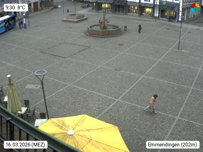D 79312 Emmendingen 202m, Große Kreisstadt im Landkreis Emmendingen im Breisgau zwischen der Vorbergzone des Schwarzwaldes und dem Kaiserstuhl in der Rheinebene. Blick über den Stadtplatz. Präsentiert von http://www.emmendingen.de.