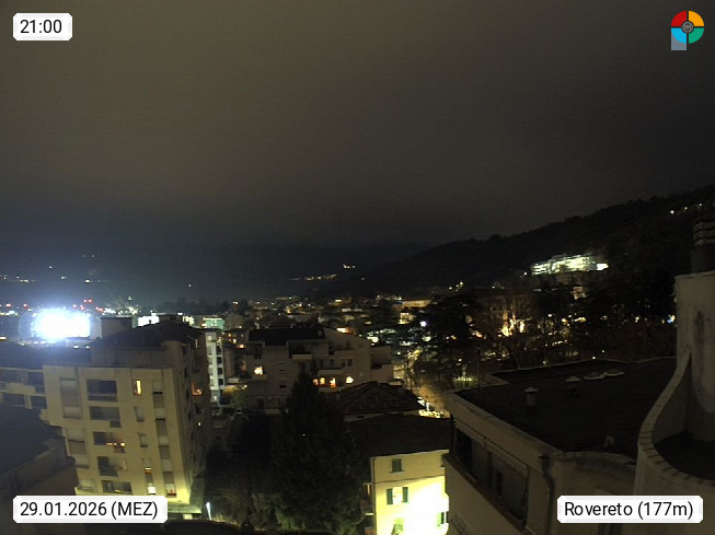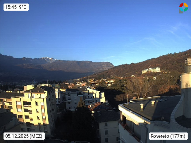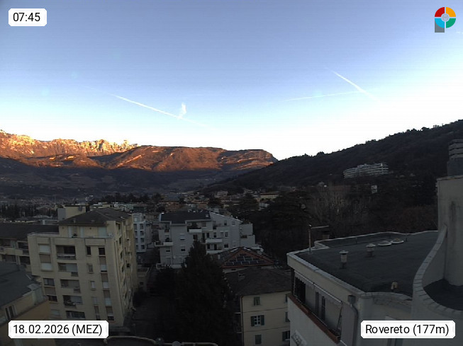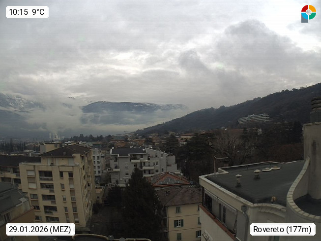 I 38068 Rovereto 175m, Stadt im Trentiner Etschtal am Leno, südlich von Trient. Blick über das Etschtal Richtung Südwest. Von der Brennerautobahn A22 Ausfahrt Rovereto Süd, fährt man zum nahe gelegenen Gardasee. Präsentiert von https://www.meteorovereto.it.