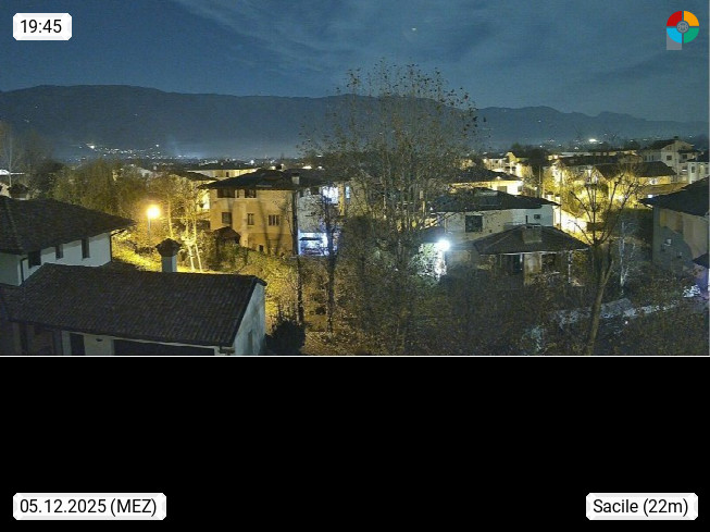I 33077 Sacile 27m an der Livenza, Stadt westlich von Pordenone welche, durch die vielen Kanäle, oft auch als Kleinvenedig bezeichnet wird. Panoramablick vom Stadtzentrum Richtung Westen. Präsentiert von http://www.sacilemeteo.it.