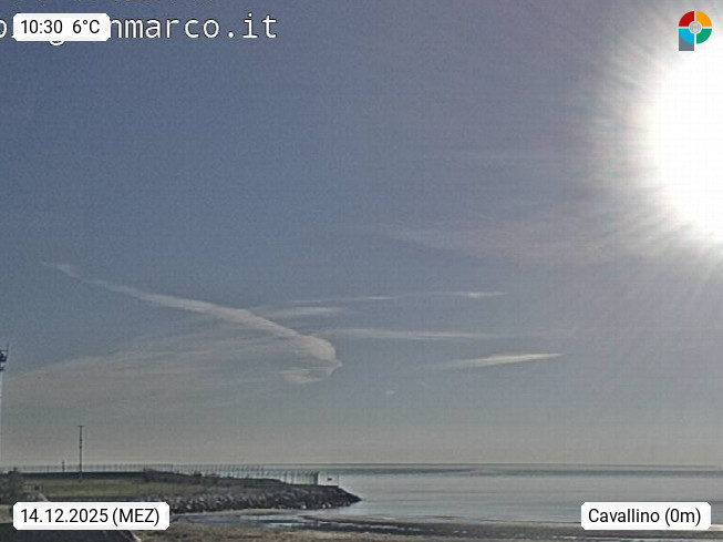 I 30013 Cavallino 1m, Badeort auf einer Landzunge welche ein Teil der Lagune von Venedig (Venezia) an der italienischen Adriaküste ist. Blick beim Leuchtturm über den Strand an der Adria. Präsentiert von https://www.campingsanmarco.it/it/.
