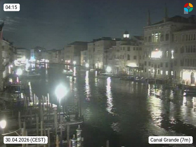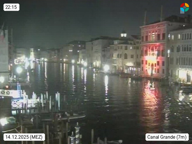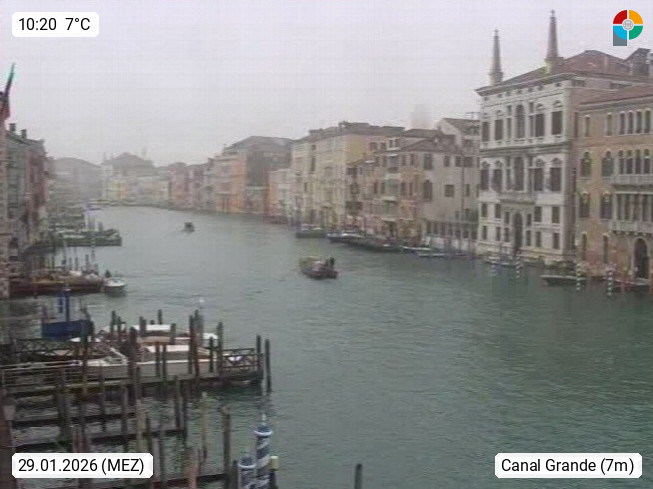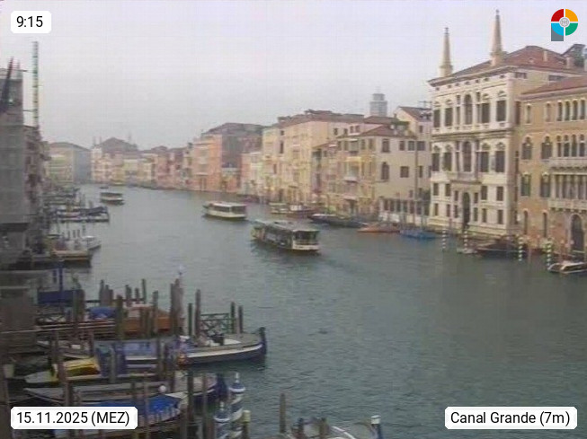 I 30120 Venedig - Canal Grande (Canalazzo), rund 4 km lange, zwischen 25 und 70 Meter breite Hauptwasserstraße in der Lagunenstadt Venedig. Blick von der Rialtobrücke Richtung Westen über den Canal Grande (Canalazzo). Präsentiert von https://www.comune.venezia.it/.