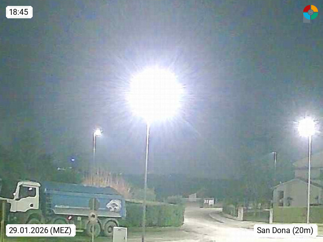 I 30027 San Dona di Piave 14m am Fluss Piave in der Provinz Venedig, rund 10 km nördlich der Adriatischen Küste. Blick Richtung Nordwest über die Stadt. Präsentiert von http://www.meteosandona.it.