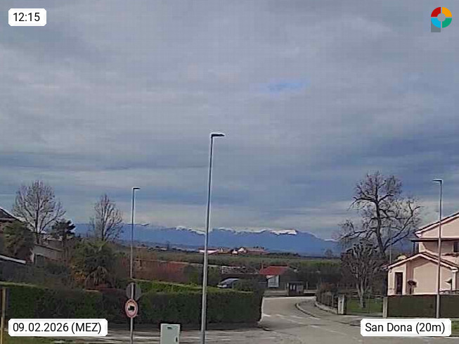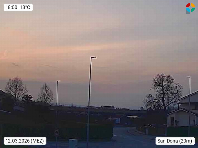 I 30027 San Dona di Piave 14m am Fluss Piave in der Provinz Venedig, rund 10 km nördlich der Adriatischen Küste. Blick Richtung Nordwest über die Stadt. Präsentiert von http://www.meteosandona.it.