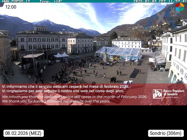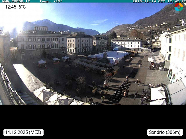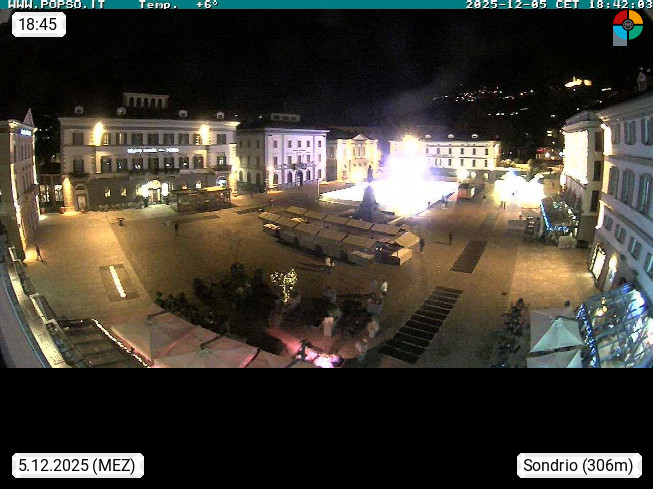 I 23100 Sondrio 360m an der Adda, Hauptort der italienischen Provinz Sondrio und größter Ort des Veltlin. Blick über den Hauptplatz Richtung Westen. Präsentiert von https://www.popso.it/home.