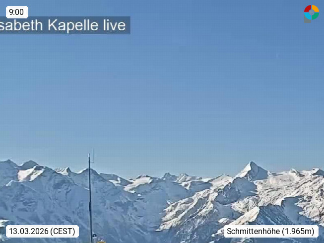 A 5700 Zell am See 750m, Hauptort des gleichnamigen Bezirkes Zell am See in der Region Pinzgau im Bundesland Salzburg. Panoramablick von der Schmittenhöhe 1.965m, Richtung Süden zum Kitzsteinhorn 3.203m mit Gletscherskigebiet. Präsentiert von https://www.schmitten.at/de.