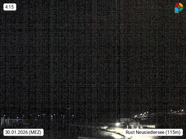 A 7071 Rust am Neusiedlersee 124m, ung. Ruszt, kroat. Rusta ist mit rund 1.900 Einwohnern der kleinste Verwaltungsbezirk und die kleinste Statutarstadt Österreichs. Bekannt ist Rust vor allem als Stadt der Störche und als Weinbaugemeinde. Blick vom Segelhafen Richtung Osten über den See. Präsentiert von https://www.seebadrust.at/.