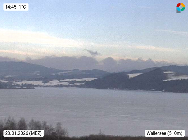Wallersee 505m, mit 6,4 km² Wasserfläche ist der Wallersee der größte See des Salzburger Alpenvorlandes. Das Einzugsgebiet des Wallersees beträgt rund 110 km². Anrainergemeinden des Wallersee sind Seekirchen - Köstendorf - Henndorf - Neumarkt. Panoramablick von Seekirichen Richtung Osten. Präsentiert von http://www.seekirchen.at.