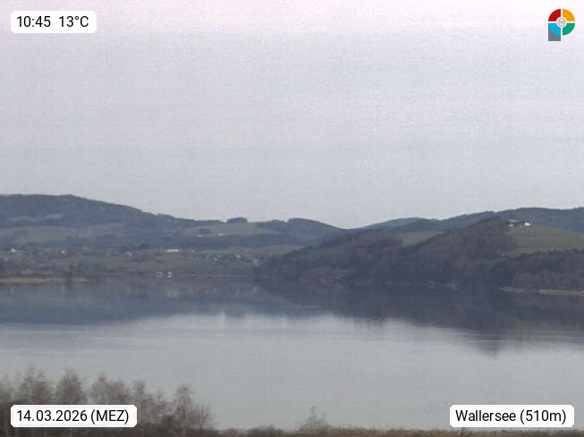 Wallersee 505m, mit 6,4 km² Wasserfläche ist der Wallersee der größte See des Salzburger Alpenvorlandes. Das Einzugsgebiet des Wallersees beträgt rund 110 km². Anrainergemeinden des Wallersee sind Seekirchen - Köstendorf - Henndorf - Neumarkt. Panoramablick von Seekirichen Richtung Osten. Präsentiert von http://www.seekirchen.at.