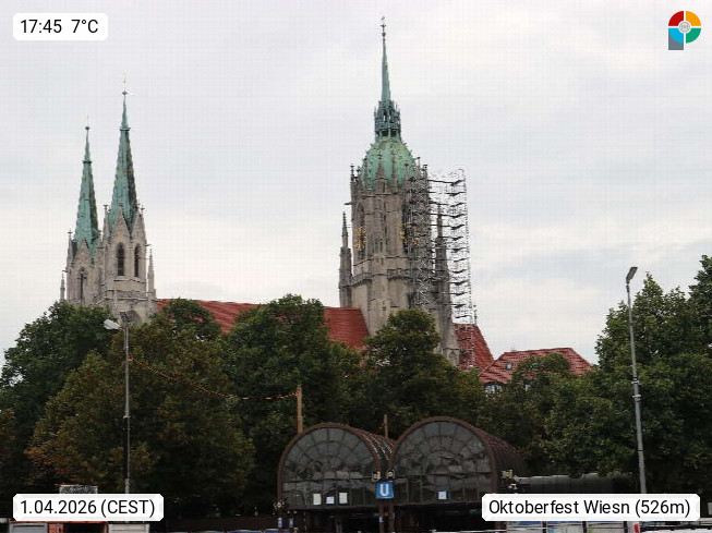 D 80339 München 519m, Landeshauptstadt des Freistaates Bayern sowie Verwaltungssitz des Regierungsbezirkes Oberbayern an der Isar gelegen. Blick über die Theresienwiese wo jährlich von Mitte September bis Anfang Oktober das Oktoberfest stattfindet, welches von rund 6 Mio Menschen besucht wird und erstmals 1810 veranstaltet wurde. Präsentiert von https://www.oktoberfest-tv.de/.