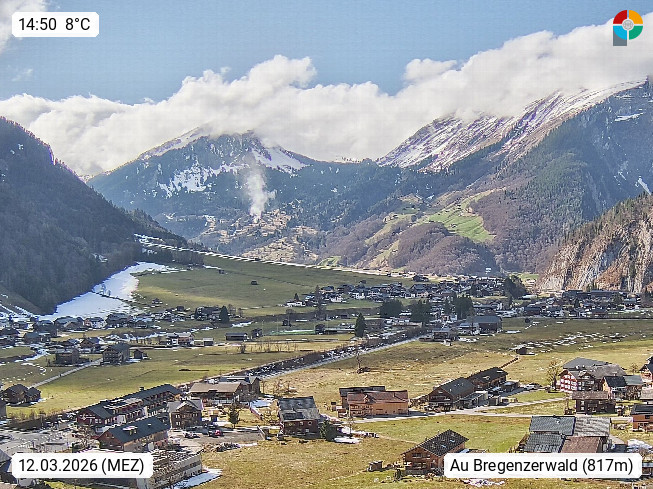 A 6883 Au im Bregenzerwald 800m, Tourismusgemeinde im Bezirk Bregenz im hinteren Teil des Bregenzer Waldes in Vorarlberg. Blick vom Alpenhotel Post Richtung Süden. Präsentiert von http://www.alpenhotel-post.com.