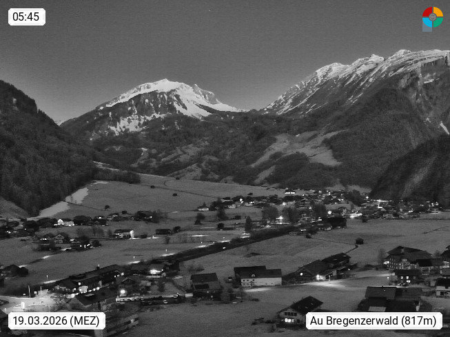 A 6883 Au im Bregenzerwald 800m, Tourismusgemeinde im Bezirk Bregenz im hinteren Teil des Bregenzer Waldes in Vorarlberg. Blick vom Alpenhotel Post Richtung Süden. Präsentiert von http://www.alpenhotel-post.com.