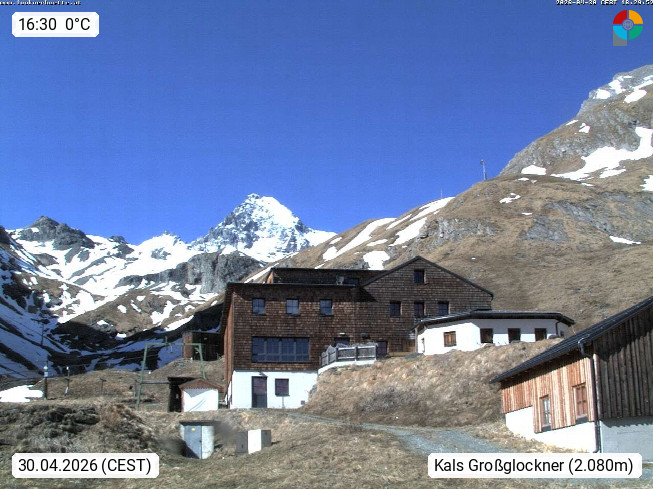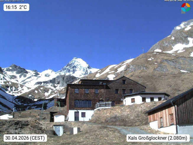A 9981 Kals am Großglockner 1.324m, Gemeinde im Bezirk Lienz in Osttirol. Blick von der Lucknerhütte 2.241m im Ködnitztal Richtung Norden zum Gipfel des Großglockner 3.798m. Präsentiert von https://lucknerhuette.at/.
