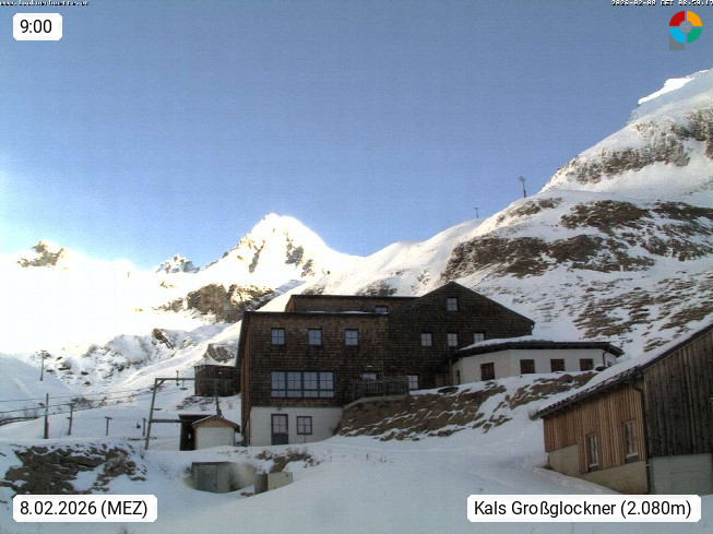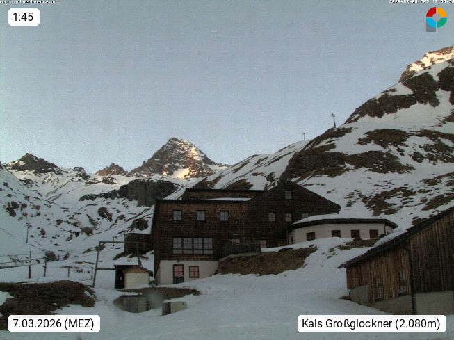 A 9981 Kals am Großglockner 1.324m, Gemeinde im Bezirk Lienz in Osttirol. Blick von der Lucknerhütte 2.241m im Ködnitztal Richtung Norden zum Gipfel des Großglockner 3.798m. Präsentiert von https://lucknerhuette.at/.