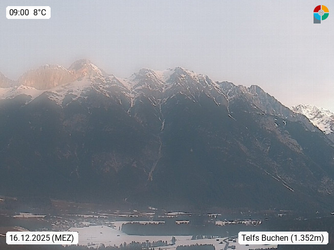 A 6410 Telfs Buchen am Seefelder Hochplateau, Marktgemeinde im Bezirk Innsbruck Land. Panoramblick vom Ortsteil Buchen auf 1.300m, Richtung Süden über das Oberinntal zu den Ötztaler Alpen. Präsentiert von https://www.interalpen.com.
