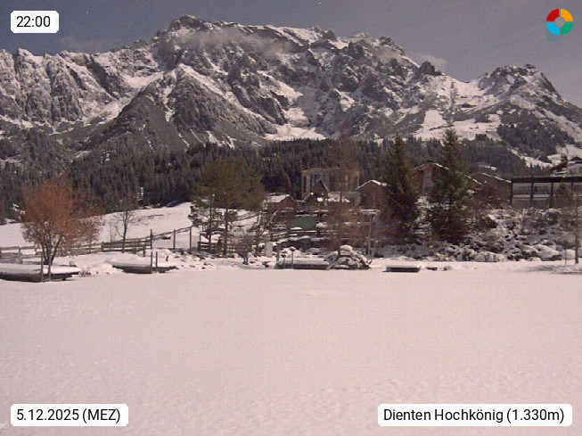 A 5652 Dienten am Hochkönig 1.050m, Gemeinde im Pinzgau im Bezirk Zell am See am Fuß des Hochkönigs 2.943m der höchste Gebirgsstock der Berchtesgadener Alpen. Blick vom Sonnberg Richtung Osten zum Hochkönig. Präsentiert von https://www.uebergossenealm.at.