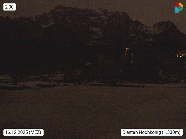 A 5652 Dienten am Hochkönig 1.050m, Gemeinde im Pinzgau im Bezirk Zell am See am Fuß des Hochkönigs 2.943m der höchste Gebirgsstock der Berchtesgadener Alpen. Blick vom Sonnberg Richtung Osten zum Hochkönig. Präsentiert von https://www.uebergossenealm.at.