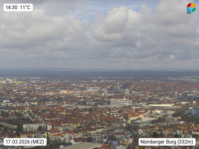 D 90403 Nürnberg 310m an der Pegnitz, kreisfreie Stadt im Regierungsbezirk Mittelfranken. Blick zur Kaiserburg dem Wahrzeichen der Stadt Nürnberg welche am Nordrand der Altstadt auf einem Sandsteinrücken thront. Die Kaiserburg wurde erstmals in einer Urkunde aus dem Jahre 1050 erwähnt und diente als Residenz für die Kaiser und Könige des Heiligen Römischen Reichs. Links der Sinwellturm, rechts der Fünfeckturm, die Kaiserstallung und der Luginsland. Präsentiert von http://www.panoramablick.de.