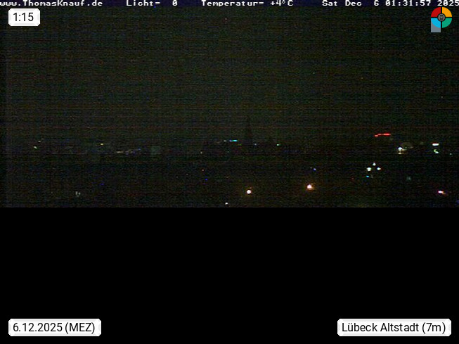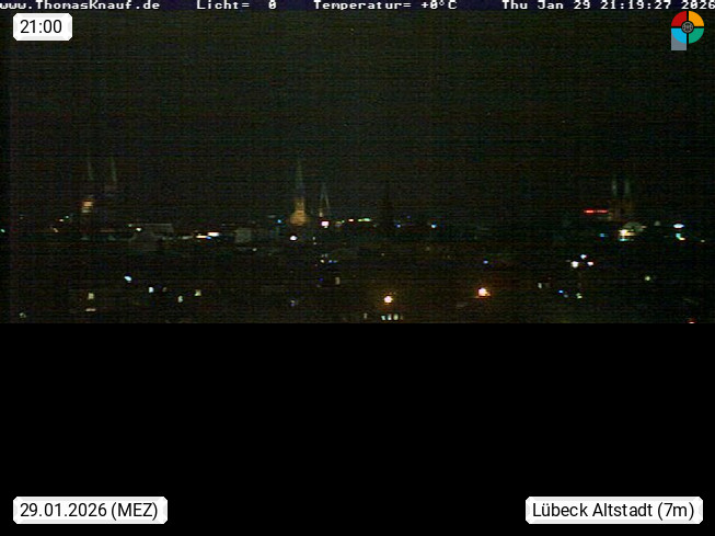D 23552 Lübeck 15m, Hansestadt im Südosten von Schleswig Holstein an der Ostsee, Lübecker Bucht. Blick Richtung Osten über die historische Altstadt von Lübeck mit der Petrikirche und Marienkirche. Präsentiert von http://thomasknauf.de.