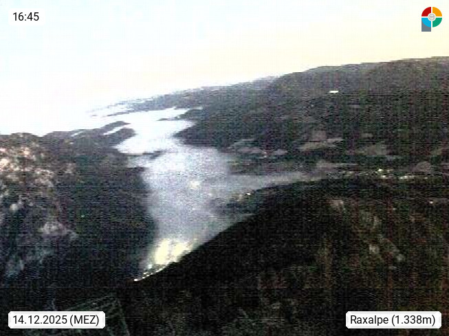 A 2651 Reichenau an der Rax, Marktgemeinde am Fuß der Rax im Bezirk Neunkirchen. Blick von der Bergstation am Raxplateau 1.546m Richtung Osten. Präsentiert von https://www.raxalpe.com.