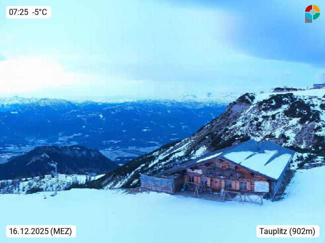 A 8982 Tauplitz 900m, Gemeinde im Bezirk Liezen im steirischen Salzkammergut. Panoramablick vom Berghof 1.656m auf der Tauplitzalm, einem Hochplateau im Salzkammergut auf 1.600 - 2.000 Meter Seehöhe, Richtung Südwesten zum Grimming 2.351m. Präsentiert von https://www.dietauplitz.com/.