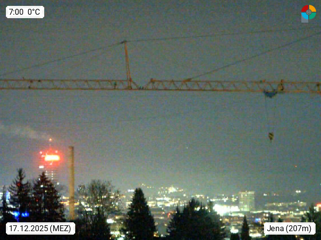 D 07745 Jena 143 an der Saale, Universitätsstadt und kreisfreie Großstadt in Thüringen und bekannt durch die Carl Zeiss Werke. Panoramablick vom Max Planck Institut, Richtung Nordost zum Stadtzentrum. Präsentiert von https://www.bgc-jena.mpg.de/wetter/.