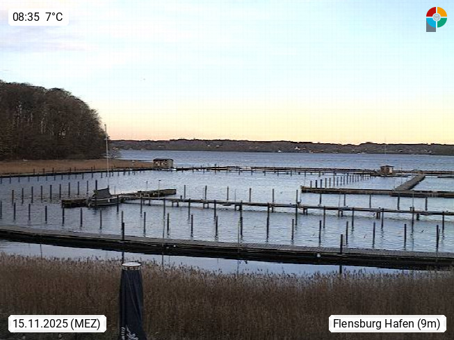 D 24960 Flensburg 10m an der Flensburger Förde, dänisch und niederdeutsch Flensborg, kreisfreie Stadt im Norden Schleswig-Holsteins. Blick über den Segelhafen Richtung Norden. Präsentiert von https://www.fsc.de/.