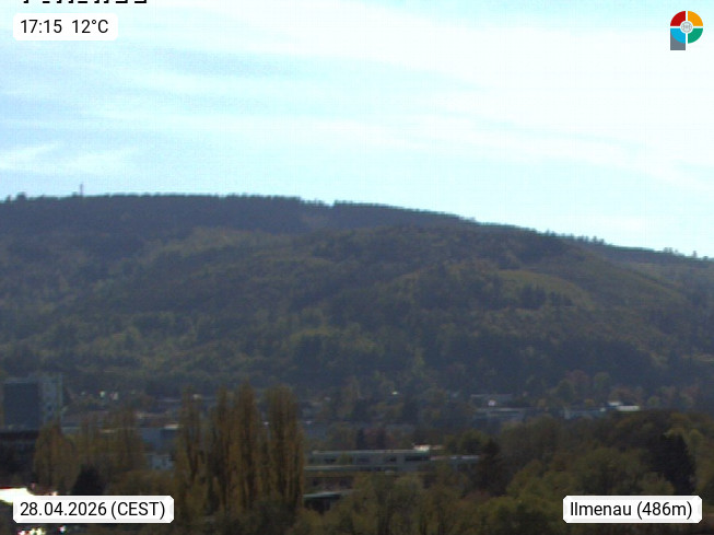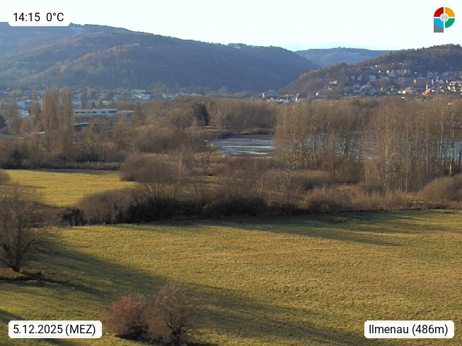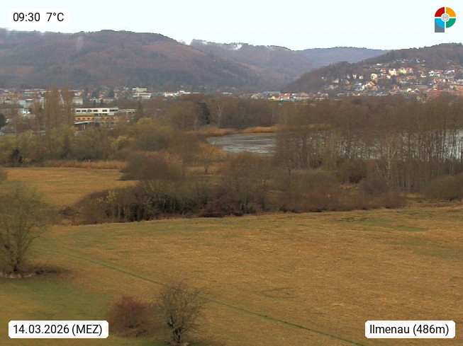 98693 Ilmenau 486 m, Goethe und Universitätsstadt im Tal der Ilm am Nordrand des Thüringer Waldes im Ilm Kreis. Blick über das Ilmenauer Teichgebiet Richtung Westen. Bei klarem Blick ist der Aussichtsturm "Kickelhahn" zu sehen. Präsentiert von https://www.itzbund.de.