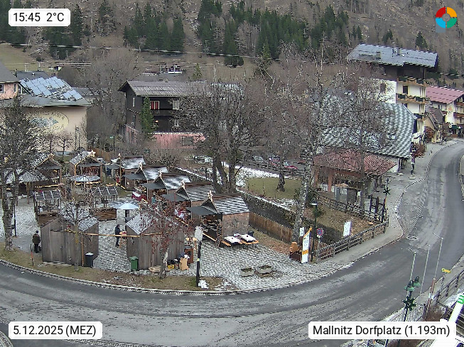 A 9822 Mallnitz 1.191m, Gemeinde im Bezirk Spittal an der Drau in einem Seitental links der Möll, eingebettet im Gebirgsstock der Goldberg und der Ankogelgruppe, welche zum Nationalpark Hohe Tauern gehören. Blick über den Dorfplatz. Präsentiert von https://visitmoelltal.at/.