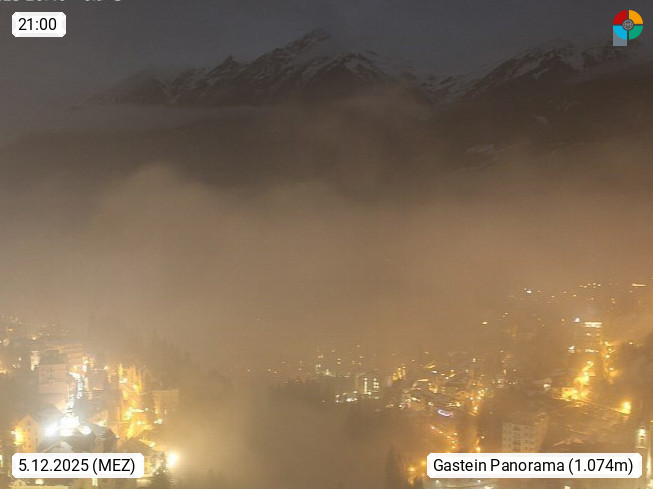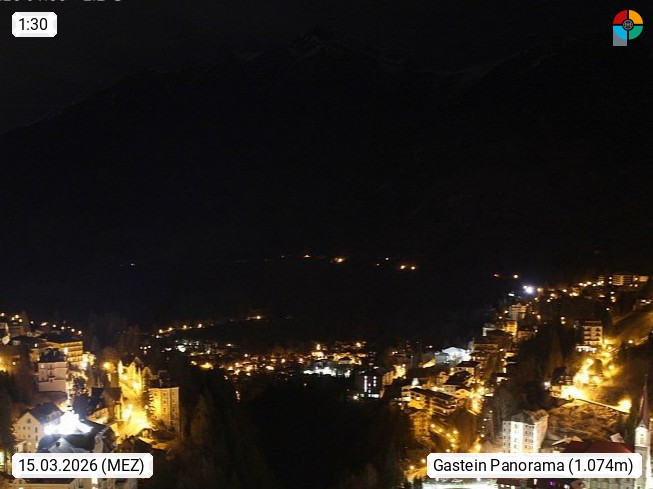 Bad Gastein 1.002m, Kurbad und Wintersportort im Gasteinertal am Fuß des Graukogels. Panoramablick über das Ortszentrum Richtung Nordost. Präsentiert von https://www.gasteinertal.com/.