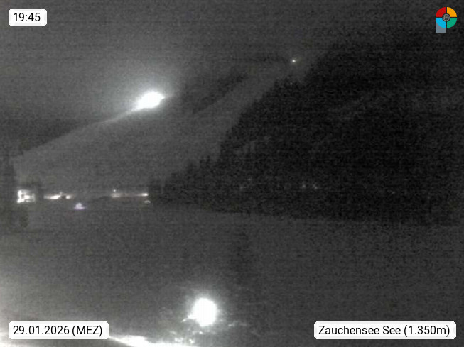 Altenmarkt - Zauchensee 1.360m, Bergdorf in der Gemeinde Altenmarkt im Pongau. Blick Richtung Südwest über den Bergsee. Im Hintergrund der Ort Zauchensee. Präsentiert von https://www.zauchensee.com.