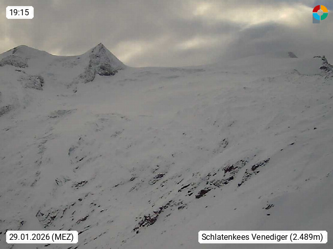 9971 Blick von der der Alten Prager Hütte 2.489m einer mittlerweile geschlossenen Alpenvereinshütte Nordwesten zum Gipfel des Großvenedigers mit 3.657m höchstem Gipfel der Venediger Gruppe. Präsentiert von https://hohetauern.at/de/.