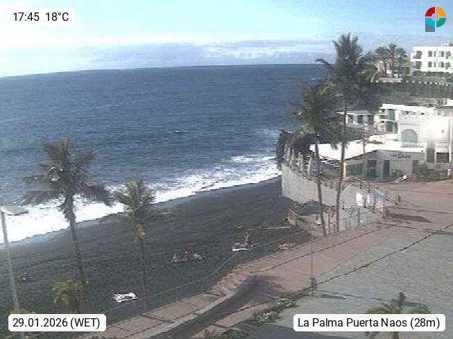 E–38769 Puerto Naos ist ein Gemeindeteil der Gemeinde Los Llanos de Aridane auf der zu Spanien gehörenden Kanareninsel La Palma. Der Ort gehört zu den wichtigsten Tourismuszentren auf der Insel. Blick auf die Promenade. Präsentiert von https://lapalmarentacar.com/.