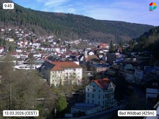 75323 Bad Wildbad ist eine Kurstadt im Landkreis Calw in Baden-Württemberg. Sie gehört zur Region Nordschwarzwald. Panoramablick auf die Stadt. Präsentiert von https://www.wellnesshotel-rothfuss.de/.
