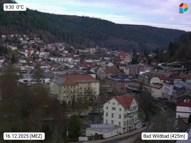 75323 Bad Wildbad ist eine Kurstadt im Landkreis Calw in Baden-Württemberg. Sie gehört zur Region Nordschwarzwald. Panoramablick auf die Stadt. Präsentiert von https://www.wellnesshotel-rothfuss.de/.