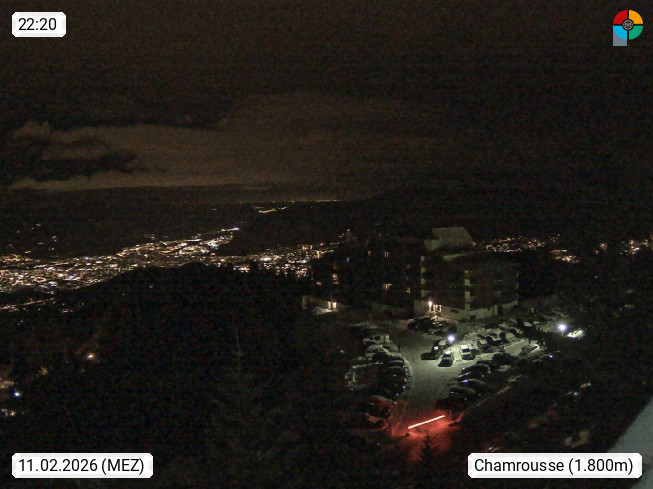38410 Chamrousse ist eine französische Gemeinde mit 403 Einwohnern im Département Isère in der Region Auvergne-Rhône-Alpes. Sie liegt rund 15 Kilometer südöstlich von Grenoble im Belledonne-Gebirge und ist als Wintersportort bekannt. Blick ins Tal Richtung Grenoble. Präsentiert von https://www.meteo-chamrousse.com/.