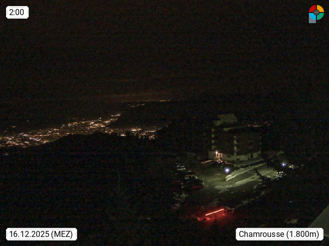 38410 Chamrousse ist eine französische Gemeinde mit 403 Einwohnern im Département Isère in der Region Auvergne-Rhône-Alpes. Sie liegt rund 15 Kilometer südöstlich von Grenoble im Belledonne-Gebirge und ist als Wintersportort bekannt. Blick ins Tal Richtung Grenoble. Präsentiert von https://www.meteo-chamrousse.com/.