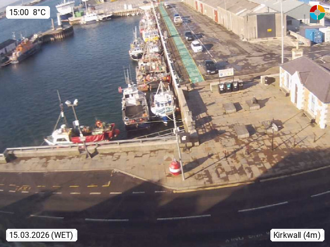 KW15 Kirkwall ist Hauptort der Insel Mainland, der größten der schottischen Orkneys, und hat 7045 Einwohner. Blick auf den Hafen. Präsentiert von https://www.kirkwallhotel.com/.