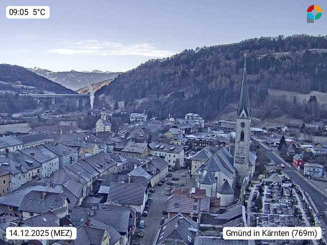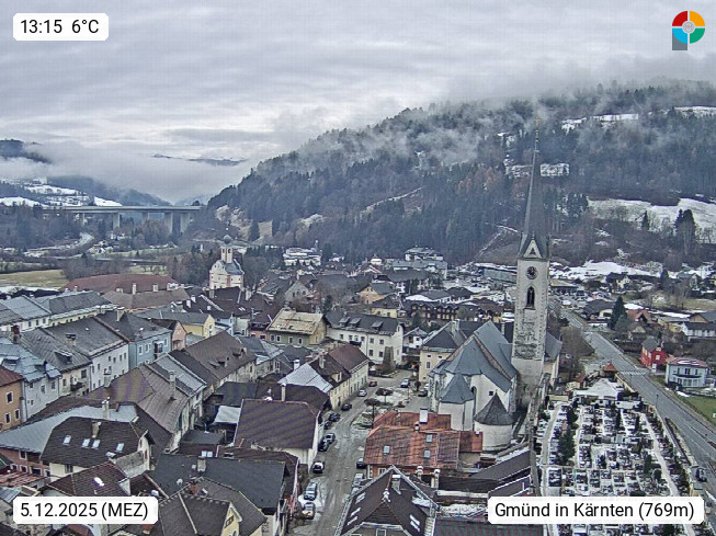 9853 Gmünd in Kärnten 750m, im Liesertal in Kärnten an Mündung der Malta in die Lieser. Panoramablick von der "Alten Burg" Richtung Süden über die Stadt. Präsentiert von https://stadtgmuend.at.