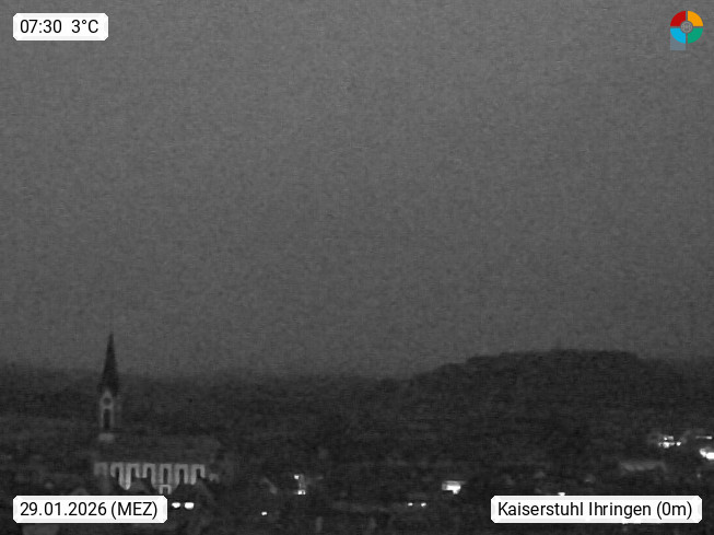 D 79241 Ihringen 202m, liegt im Landkreis Breisgau Hochschwarzwald, im Südwesten Baden Württembergs am Südhang des Kaiserstuhls. Ihringen ist bekannt als Weinanbauort und als "wärmster Ort Deutschlands". Panoramablick über die Stadt Richtung Westen. Präsentiert von https://www.ihringen.de/start.