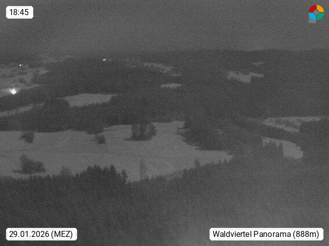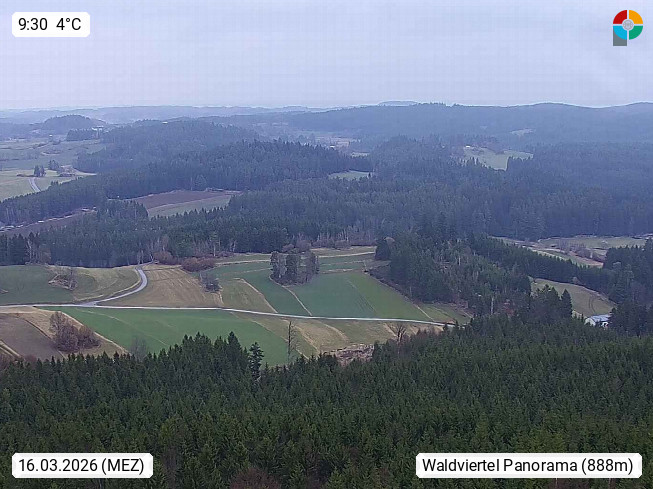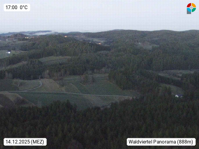 3920 Arbesbach 850m, Panorama über Teile des Waldviertels, im Mittelalter als "Viertel ober dem Manhartsberg" benannt und geografisch der nordwestliche Teil des österreichischen Bundeslandes Niederösterreich. Webcamservice von www.waldsoft.com. Präsentiert von https://www.waldviertel.info.