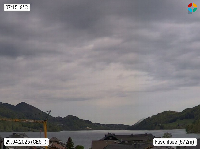A 5330 Fuschl am See 663m, recreation area at lake Fuschlsee in Salzkammergut region between Salzburg city and Bad Ischl. Panoramic view in toward northwest across Fuschlsee lake. Presented by https://www.hoteljakob.at.