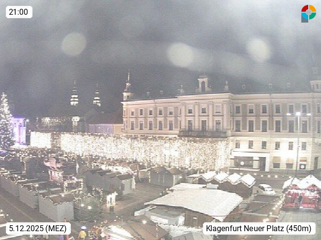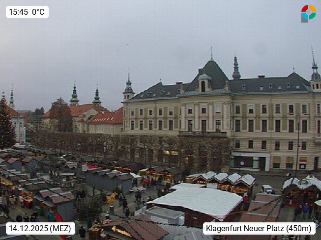 A 9020 Klagenfurt at Woerthersee 446m, is the capital of the Austrian state Carinthia. Panoramic view to the town hall in west direction over Neuer Platz square to the landmark of Klagenfurt, called Lindwurm. Presented by https://www.klagenfurt.at:443/.