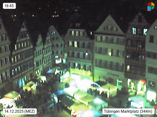 D 72070 Tuebingen 341m, in the Neckartal valley is a well known University Town and the largest town of the rural district Tuebingen. Panoramic view over the market square in the old town of Tuebingen. Presented by https://www.tuebingen.de/.