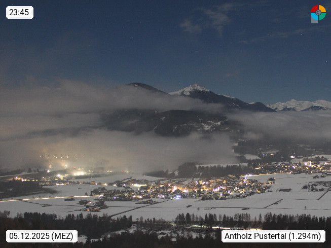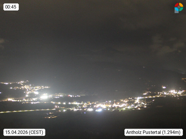 I 39030 Olang Geiselberg at Kronplatz (Valdaora) 1.090 m, is a village in the Rienzer Tal valley at the beginning of the valley Antholzer Tal (Valle di Anterselva) in the autonomous province South Tyrol (Alto Adige). Panoramic view from Hotel Hubertus in direction east to Pustertal Valley. Presented by https://www.hotel-hubertus.com/.