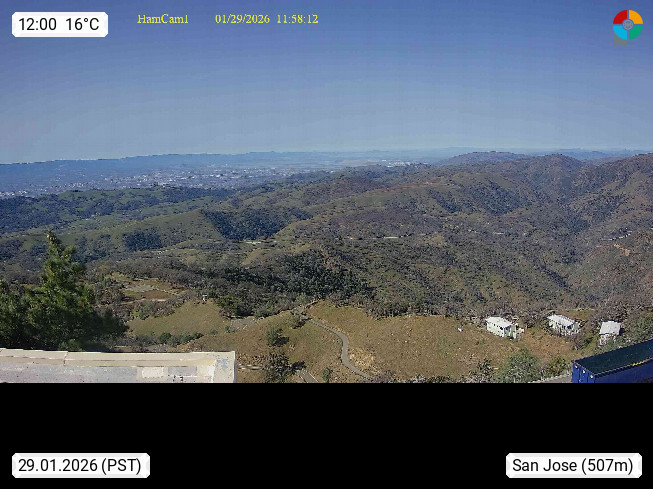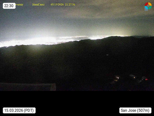 San Jose 6m, seat of the administration department of Santa Clara County at the southern ending of San Francisco Bay and belongs to the high tech area of Silicon Valley at the hillsides of Diablo Range with Mount Hamilton 1.327m. Panoramic view in west direction over the city. Presented by https://mthamilton.ucolick.org.